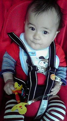 今年初節句の豊吉。今後、引越しも多いだろうということで、ばぁばが収納タイプの兜を買ってくれました♪ お気に入りのストローラーでのお散歩もご機嫌☆ 本当は時系列でアップしていきたかったんだけど、今日どうしても書いておきたいことがあったので、急に大きくなった姿をお見せすることになってしまいました(汗) 今月の11日に6ヶ月を迎える豊吉ですが、今のところ母乳オンリーでスクスクと育ってます。 本当に母乳だけでよく育つものだと動物の素晴らしさを実感してますが、ちょうど6ヶ月目の日にJ君のところへ戻る予定なので、その辺りからボチボチ離乳食を進めていきたいと思ってます。 そんな中、まさに今日、事件が起きました。 機嫌よく遊んでる途中にプリプリッと乾いた音が聞こえ、しばらくして顔を真っ赤にしてウ~ンと唸ったかと思うと、水っぽい音が聞こえたのでおむつ交換の合図。 ま、こんなのはいつもの事なので普通どおりにHåkichiのおしりを拭いてたら、穴の所に「しいたけ!?」と思ってしまうくらい大きなものが見えたんだけど、離乳食も始めてないのに、固形物のウンチが出るはずもないし・・・とじっくり観察してみるとクマのシールが出てきました!! ま~、本当にびっくりしました。どこからやってきたのだろうと、ふと心当たりのあるものを見てみると ↓ ↓ ↓ 母子手帳を入れてるケースに貼ってたシールが一つ消えてる・・・・・ そしてHåkichiのおケツから出てきたウンチまみれのシールはまさにそのシール。 って事は、何かの拍子に口に入れて飲み込んでしまったって事!? いつ飲み込んだんだろう?? よく食道や胃や腸に貼りつかなかったもんだ。 先月から寝返りを始めていろんな方法で前進しようとしているHåkichi。 そして目の前に現れたキラキラしたもの。 よく見ると自分がよく身に着けているクマの服と似てる。 きっとクマさんが美味しそうに見えたんだろうね。 Håkichiの周りに放置していたマミーが悪かったです(涙) と同時に、離乳食を始めてないのに液体以外の物も飲み込むことができるのか!? と驚いてしまいました。きっとこれはもう、離乳食開始しても問題なしって事なんだろうな。 ダディの待つ家に戻ったら早速ご飯あげるから、あと数日だけ辛抱してね。 それまでは・・・・・・・・ 自分の足の指でも舐めて我慢していてください。 にしても、赤ちゃんの柔軟性のスゴさには感心させられます。 そんなにガッつかなくても・・・というくらい美味しそうに食べてるHåkichi。いったい何味なんだ!? 最後に、Håkichi 母の日に素敵なサプライズをありがとう! よく反省しておきます。 |