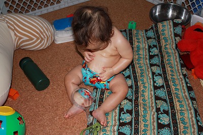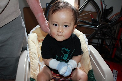 Håkichi、あっという間に9ヶ月になってしまいました。 順調に成長していると思われ、約8.4kg、73cm(計測by母)な感じです。 最近は本当に暑く、たま~に家でもオムツ一丁で過ごすこともあるんですけど、 こんな怖い表情をしたかと思ったら、 こんなおどけた表情もするんだけど、この髪型って・・・・・ ↓ ↓ ↓ この人を思い出してしまいました(汗) 一人遊びもよくするし、静かになったな~と思ってたら、自分の体チェックしてましたし。 メタボが気になるお年頃!? よく遊びよく食べよく寝てくれるんだけど、一つ気になるのがほっぺのかぶれ。 多分、よだれと離乳食でかぶれたんだと思うけど、これは新生児の頃も同じように赤くなって、小児科でもらった軟膏をつけてしばらくしたら治ってたんだけど、今回はちょっと訳が違う!! 手が自由に動かせるようになったもんだから、ほっぺを思いっきり掻きむしってしまうんですよね(涙) ミトンをつけてもブカブカなのですぐに外してしまうと思い、最後の手段として ↓ ↓ ↓ ↓ 新生児期の靴下。手にぴったりフィットして外そうにも外せません。 それでも、靴下越しにほっぺをかきむしる豊吉。 治りかけたと思ったら、掻き壊してまたひどくなってしまうという繰り返しです。 この時期暑いのでこの靴下作戦も1,2回試した程度で一向に良くなる気配なし。 しばらくはあきらめて涼しくなるを待ったほうがいいのかな・・・ これがアトピーじゃないのを祈るばかりです。 皆さんの所はどうされてたんでしょうか? |