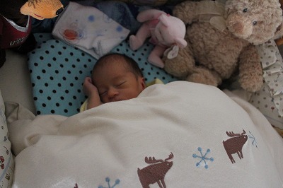 11月11日(木)に出産して、13日(土)から母子同室開始。 今までは、Håkichiの授乳以外は寝るかテレビを見るかだけだったんだけど、同じ部屋にHåkichiがやってきて、Håkichiの観察が勢いを増します(笑) この時に一緒にでる声がまた可愛い♪ なぜか手が異様に白いんですけど・・・・・マミーとダディがほどよくミックスされてるならいいんだけど、パーツごとに違うのは怖いのでやめてください(汗) そして予定日より2週間ほど早くこの世界に出てきたHåkichi。本人はまだ私のお腹の中にいると思っているのか、自然に壁の方に移動していって側面にタッチ。 Håkichi、何度ベッドの中央に戻しても、側面目指して移動し、手と足だけにとどまらず、顔までくっつけてました。 HåkichiはJ君によって非常にコンパクトにまとめられました。 さてここから、新米マミー&ダディにより子育てが始まるわけなんですが、退院した当日は家に帰って何をしていいか分からず、とりあえず2人で観察。 そして翌日。おむつ交換、授乳以外のほかに新たな試練が!! そう、沐浴です。沐浴指導は退院前日に1回やったのみで、まるで自信なし。しかも私たちが実践しようとしている沐浴は普通の沐浴とは違うし・・・ ベビーバスを購入するに当たって、一般的なものは1ヶ月くらいで使わなくなってしまうというのを聞いていたので、私たちが選んだのは ↓ ↓ ↓ ↓ Tummy Tub (←公式ウェブサイト) 「ママのお腹にいた時と同じ、赤ちゃんがいちばん落ち着ける姿勢で沐浴できる」というコンセプトが気に入り、プラス私とJ君が普段からシャワー浴しかしないので、Håkichiをお風呂気分にさせてあげるのはこれが一番かなと思い購入。2歳頃まで使えるらしいし、数年後Håkichiが巨大化しこのタブが使えなくなったら、他の使い道がありそうだし。 という事で、Håkichiをタミータブに入れてみたんだけど、Håkichiがあまりにも小さくてタブの中に埋もれてしまいそうになりパニクる+ブチ切れるJ君。仕方がないので、私がキューバにいた時に足浴に使っていたたらいを使用。 何も知らないHåkichiは幸せそうにお湯に浸かってます。 お湯に浸かっているときはいいんだけど、その後が大変! Håkichiをタオルに包みキッチンのシンクからリビングへ移動し、服を着せるんだけど毎回のように大泣きするHåkichi。数日がこの繰り返しで、移動の最中に泣き始めていることを発見してからは、キッチンにハイローベッド(これもまた優れもの!!)を置き、そこでササっと着替えることに。すると大泣きすることもなくなりました。ほっ。こうやって試行錯誤しながら親になっていくんですね~。 そして新米マミー&ダディのドタバタ劇に付き合わされ、疲れ果てた(?)Håkichiは再び天使のような顔で眠りにつくのでした。 Håkichi、君は本当によく寝る子で母さん嬉しいよ☆ ※ちなみに新生児時代にお蔵入りになったTummy Tubですが、もうすぐ4ヶ月になるHåkichiには大活躍!! その様子はまた後日お知らせします。 |