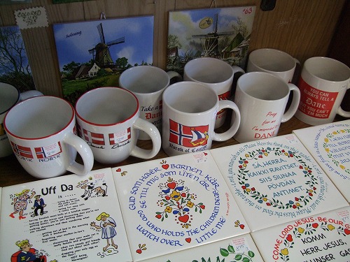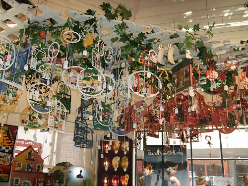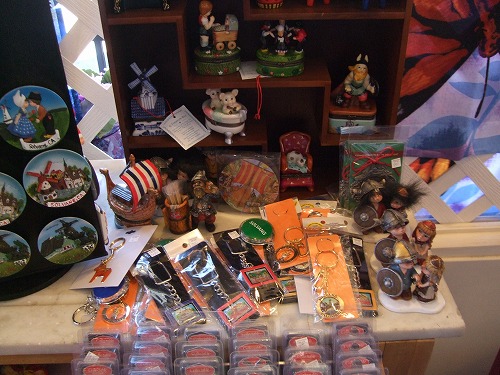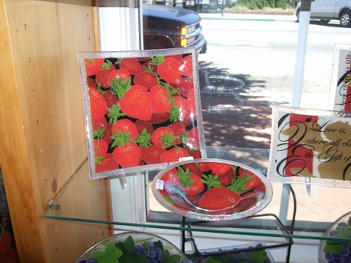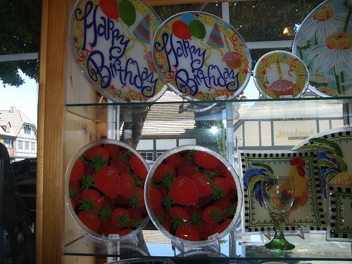 まだ懲りずに2ヶ月以上も前の旅行を懐かしんでいますが、その続きです ![]() SOLVANGの旅の始まり~ 【8月9日】その1 デンマークの街、DOLVANGを歩く【8月9日】その2 SOLVANGのラヴェンダー畑、ポニー農場、フィエスタ【8月10日】その1 SOLVANGの格安のお食事どころ&ノルウェー三昧!! 【8月10日】その2 1ドルランチを食べて、ノルゲショップでお買い物をした後、ビールテイスティング をしていると言うお店へ行く事に。(写真はクリックすると別ウィンドウで拡大して見られます♪) ワインの街、SOLVANGということもあって、店内にあった殆どはワインでした ![]() でもヨーロッパのビールも何個か置いていて、それを食い入るようにチェックするJ君。 中には日本語で書かれたお酒(?)もあって、日本人の私としてはこのお酒がどれくらい人気があるのか気になってしまいます ![]() さて、お目当てのビールテイスティングですが、確か$10だったと思います。小さなグラス(といっても結構な大きさ)に6種類のビールが注がれて出てきました。 手前左から ・Kostrizer Black Lager(Tringen, Germany) ・Brother Theronius Abbey Brwon Ale(Ft, Blagg, CA) ・Franboise Rasberry Lambic (Vlezenbeek, Bergium) ・Alaskan Amber(Juneau, Alaska) ・Fuller's London Pride pale ale(London, England) ・Great White pale ale(Eureka, CA) Jママ旦那も同じサンプラーを注文し飲んでいました。私はJ君と一緒にテイスティング。といっても、J君はフルーティなビールは苦手なようで、そっちの方が私の担当になりました ![]() しばらくして、アジアからの団体客がやってきて、ワインテイスティングを楽しんでいて、騒がしくなり始めたので私たちは退散 ![]() その後はまたお店をブラブラと立ち寄りながら歩きました。 私たちの大好きなBIRKENSTOCKのお店もありましたが、お気に入りが見つからず、さら~っと流す程度。 しばらくすると、またノルゲちっくな香りのするお店が見えてきたので、迷わず中に入ってみると ありました!! またも可愛いノルゲグッズ ![]() その他にも、陶器製品もたくさん。 ところで、私が初日にSOLVANGで買ったお土産を覚えてますでしょうか? ↓ ↓ ↓ ↓ ↓ ↓ ↓ ↓ ↓ ↓ 最初にココで買っておいてよかった~と改めて思ったのは、似たような形なんだけど、↑でハート型に刳り貫かれている部分が、他のお店で売られているのは ↓ ↓ ↓ ↓ こんな感じのイチョウ型なんですよね。なので、初日の店じまいセールで買っておいてよかった~と満足した私です ![]() お店の中の方に入っていくと、いろんなものが売られていて、 もうクリスマス??と思わせるくらい大量のウィンドチャイムや サンタクロース。 その他にもノルウェーの国旗や小物もたくさん!! もともと赤が大好きな私なので、これだけたくさんの赤いモノをみると大興奮してしまいました ![]() そして次に入ったお店はちょっとオシャレなグッズがありました ワイン好きの人にはこんなオシャレなワインホルダーはいいかも♪ 他にはシリアル好きには便利なものも。 でもね・・・実は我が家にも↑あるのですが、使ったのは最初の半年くらい。結構場所をとるし、たまにシリアルがこぼれちゃう事もあるので、日本に越してからはまだ箱に眠っている状態です ![]() あと、欲しかったのがコレ!! ↓ やっぱりイチゴ好きには欲しい一品です でもお皿だし、割れるだろうな~と思って買わなかったんですよね。今更ながらちょっと後悔・・・そして同じお店の中に、何とあの熊グッズもありました!! 思わず「オォォォォ~!!!」と叫んでしまい、本当は日本に引っ越してしばらく落ち着くまでは追加で買うのは止めようと思っていたんだけど・・・・ 私の頭の奥の方で悪魔が囁いてきてね。 ![]() ここで玄関先に置く、キーフックを買ってしまいました。でもJ君は私がここで買ったのを気がついてないみたいでした ![]() この後、一度部屋に戻り、J君は足が痛いと言い出して、しばらく部屋でお留守番。私とJママとJママ旦那3人でキルトショップに出かける事に。これはまた次の日記で書こうと思います。 で、キルトショップから帰ってきて、J君の足の痛みも治まったようなので、出かけていったのがバイクショップ。 普通のオシャレ着を見るよりも、こういったスポーツウェアを見るのが大好きな私にとってはこのお店もまた楽しい場所でした ![]() Jママ旦那は同じバイク乗りでもHarley Davidson乗りの方なのですが、やっぱりこういったものには興味を示していて、J君と話が弾んでいました。 特に左下の写真の写真なんて、Jママ旦那の青春時代の頃の自転車だそうで、今も綺麗な状態で残っている事に驚いていました。確かにこの自転車、値段も相当高かったような・・・でも可愛い♪ お店のショウウィンドウには有名なサイクリストのジャージや使用したバイクも飾ってあって、 食い入るように眺める2人。J君もこの時は早く日本に移動して自転車に乗るのが待ちきれない様子でした ![]() 私たちが自転車屋さんでバイクを見ている間、Jママは1人ベーカリーショップに